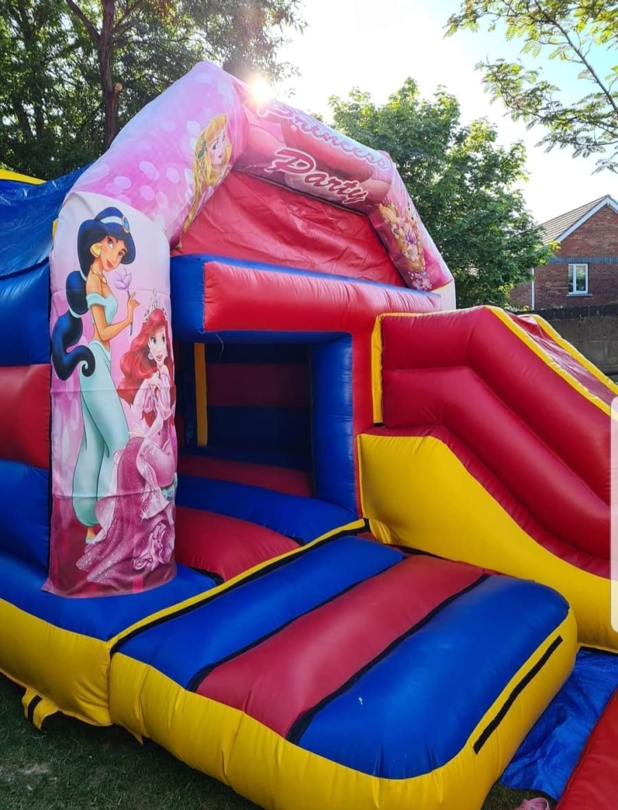 Our Velcro Slide Bouncy Castle can be transformed into a range of themes from princess, fairies and LOL to Liverpool or Manchester United FC for the footbal fans.